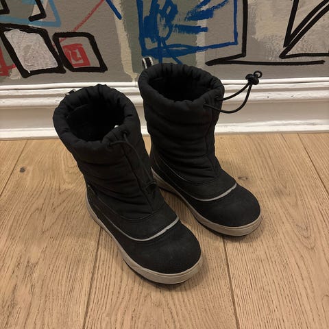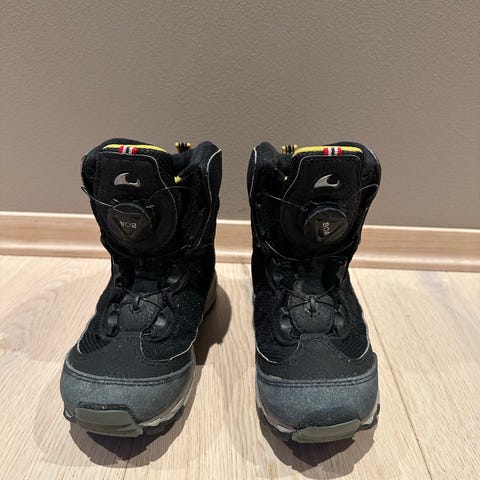 Viking barne vinterstøvler i størrelse 30, designet for unisex bruk. Støvlene er svarte og laget med materialer som gir varme og beskyttelse mot vinterforhold. Egnet for barn i kalde og våte omgivelser.