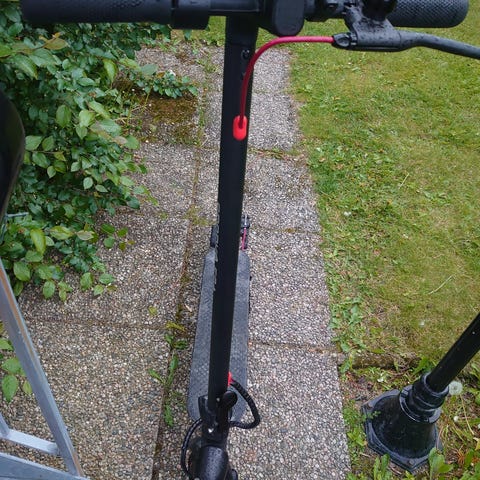 Denne elektriske sparkesykkelen kjører jevnt, stille og har en miljøvennlig elektrisk motor. Sparkesykkelen har en bakbremse. Denne elektriske sparkesykkelen er solid, sammenleggbar, i aluminium og stål.