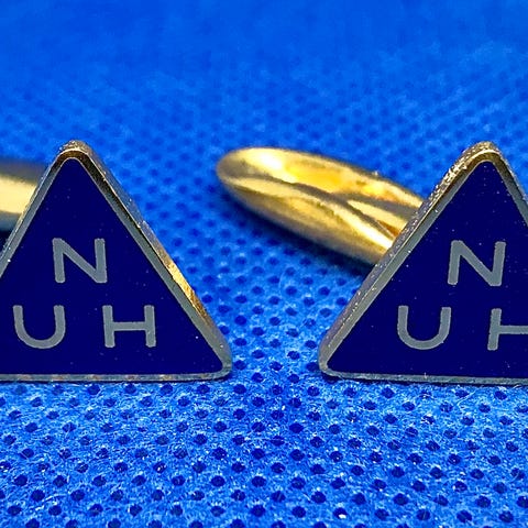 Pins/jakkenål/brosje NUH (norsk ungdomsherberge) vintage, meget god stand. Emaljert, i farger mørkeblått og gull.