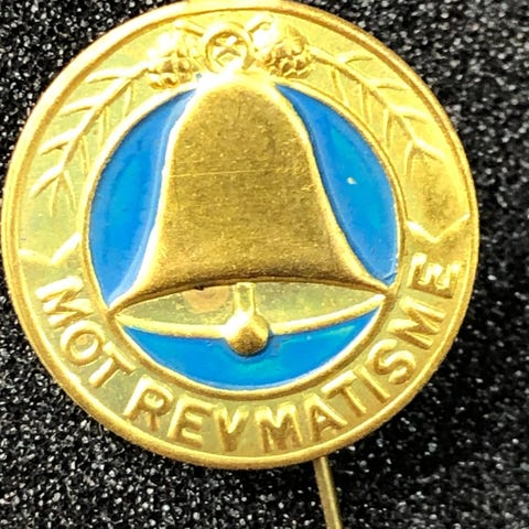 Pins / jakkenål «Mot kreft» i fargene blått og gull. Vintage.