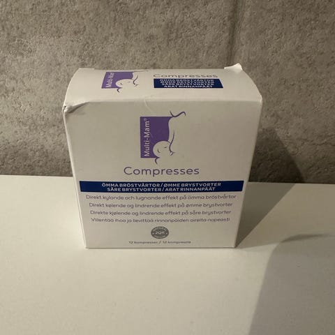 Selger uåpnede/ lite brukte Multi-Mam kompresser. De gir rask lindring ved såre eller ømme brystvorter, spesielt i starten av amming med nyfødt. Kjølende, beroligende og helt trygge for babyen.