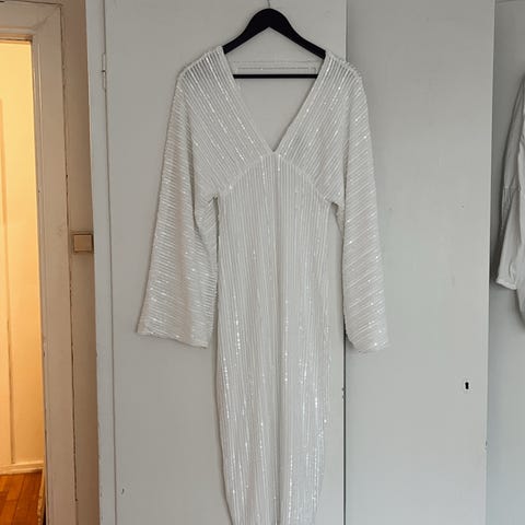 Dame kjole med paljetterer hvit som ny , brukt 1 gang
