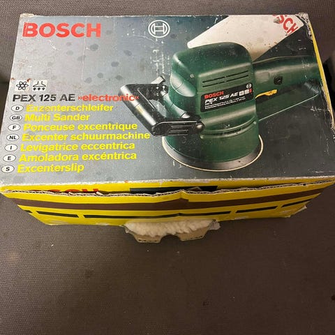 Bosch PSS 250 AE elektronisk eksentersliper med 250 watt motor. Verktøyet har lav vibrasjon for bedre brukskomfort. Egnet for sliping av tre, maling og lakk. Inkluderer original emballasje og bruksanvisning.