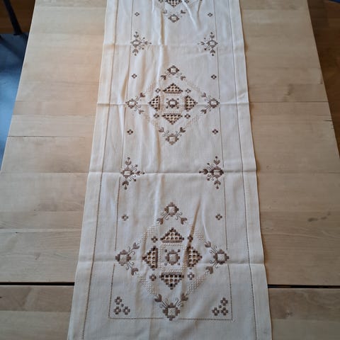Bordløper i ull med korsstingsbroderi