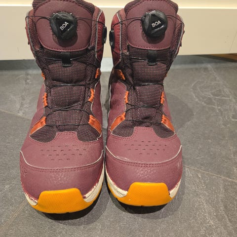 Viking vintersko i størrelse 39. Skoene har en høy ankelstøtte og er laget med materialer som gir god beskyttelse og komfort. Såvidt brukt før de ble for små. Skoene strammes med et meget praktisk hjul, ingen knytting.