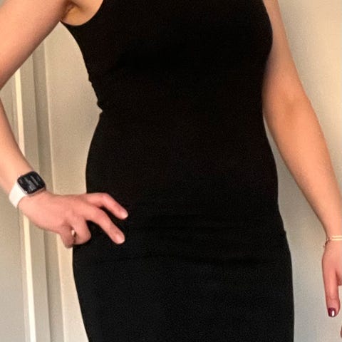 Damen på bildet bruker vanligvis str S, derfor er kjolen litt romslig til henne.