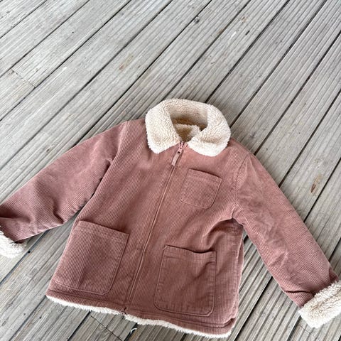 Nydelig Zara vinterjakke i størrelse 80 for gutt. Cordfløyel utenpå. Jakken er brun og laget av kordfløyel med en fôret krage (og inni jakken) i mykt materiale. Den har knappelukking foran og lommer på brystet. Jakken er egnet for barn i denne størrelsen og gir varme og komfort.