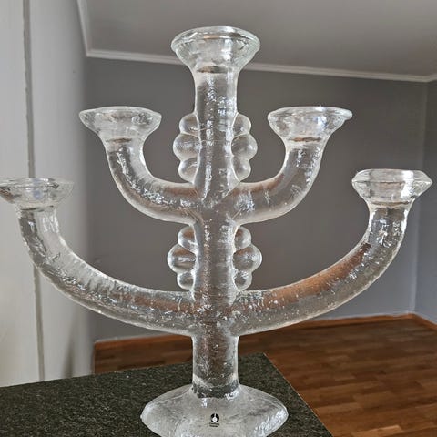 Stor og solid svensk lysestake i glass. Vintage fra 1970-tallet