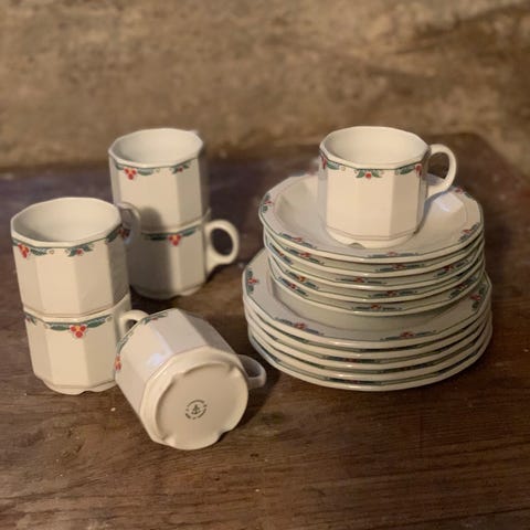 Den ene koppen av nummer 4 har et lite hakk (se bilde), ellers er koppene i god stand.