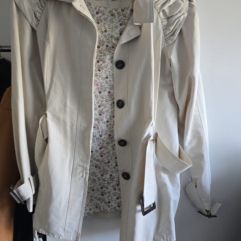 Marie Philippe damejakke i størrelse 36. Jakken har en nydelig lys brun farge og kombinerer quiltet stoff på fronten med strikket mømateriale på ermer og bakside. Den har glidelås foran og ribbestrikkede mansjetter og kant. Jakken er egnet for hverdagsbruk og til penere bruk. Jakken er brukt 1 gang og er som ny. Kostet ny ca 1600,-
