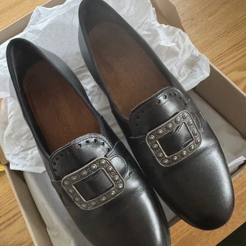 Bunads skoi skinn: Klaveness . Meget god gå komfort. Brukt men mye bruk igjen. Ikke slitt på hel. Såle er heller ikke nedslitt selv om farge har blitt vekk.Mye bruk igjen. Nypris for 2 år siden 1750,- Sendes mot porto
