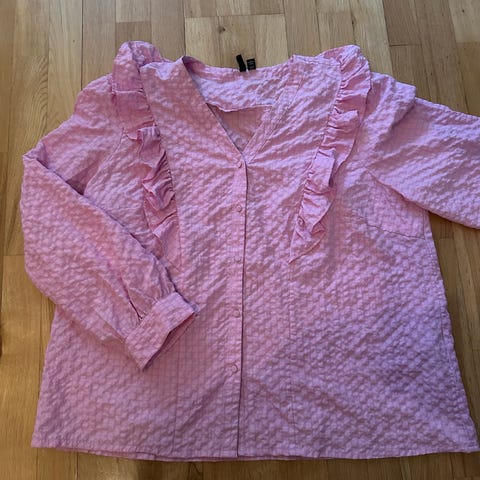 Zara Annet yttertøy i størrelse S, beige farge. Jakken har dobbelspent knappelukking og to lommer foran. Materialet er mykt og har en lett struktur. Norsk størrelse vil jeg anslå til 40/42.