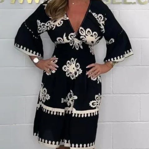 Nydelig offwhite minikjole med vakre broderte detaljer og geometrisk mønster. Kjolen har flatterende V-hals og er laget i 100 % bomull, med bomullsfôr – lett og behagelig å ha på. Perfekt både til både fester og hverdagsbruk, styles enkelt med sandaler, sneakers eller hæler.
