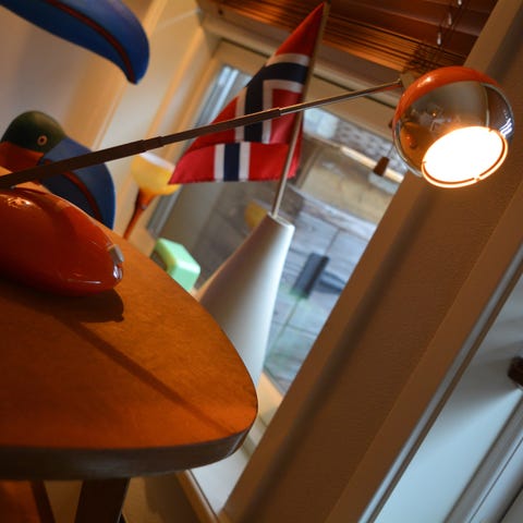 Meget pen vintage retro sopplampe. Soppen er i god stand, fungerer og med original ledning og støpsel, og bærer preg av å ha blitt tatt godt vare på.