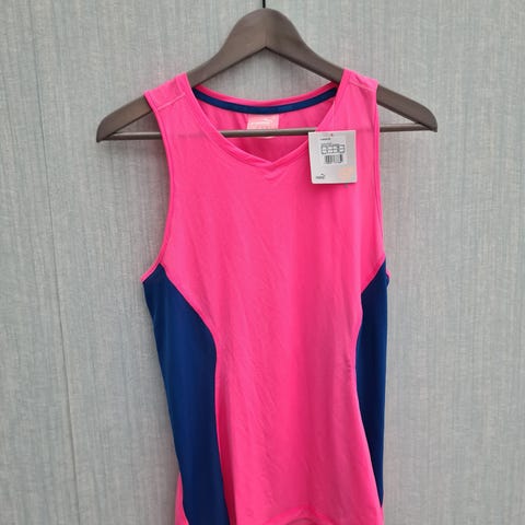 Puma T-skjorte for dame, laget av bomull. T-skjorten er rosa med svart Puma-logo på fronten. Egnet for sport og fritidsbruk.