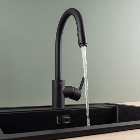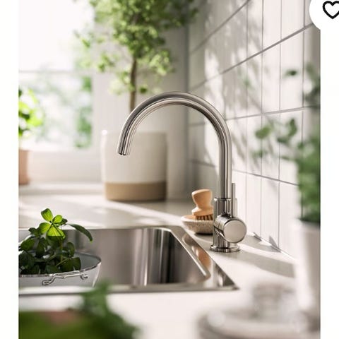 Armatur fra Damixa, silhoutet J-spout DWV stål. Ny, kjøpt i tilknytning til en kjøkkenutstilling. Ventil for oppvaskmaskin.