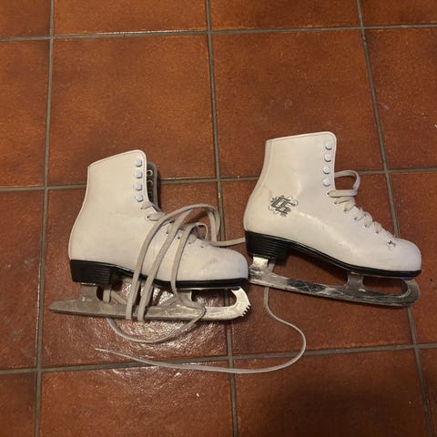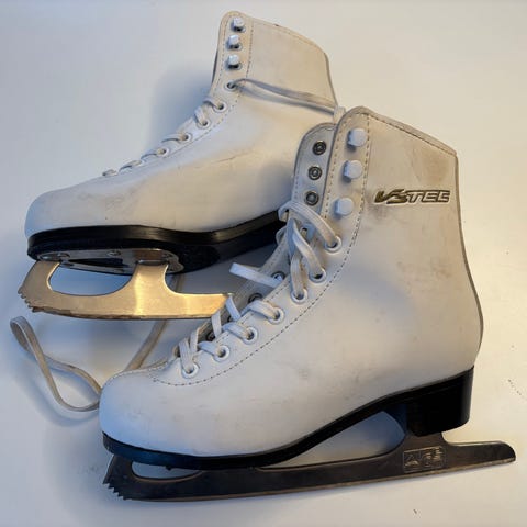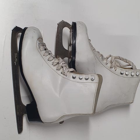 Risport Andre skøyter skøyter i størrelse 35. Skøytene er hvite med metallklinger og snøringssystem. Egnet for bruk innen ulike skøytesporter. Ingen foring innvendig.