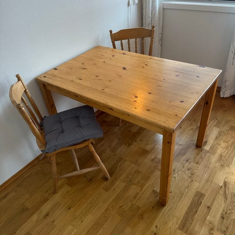 Den ene stolen har et feste med knekk under (se bilde) men dette er ikke noe man merker i daglig bruk.