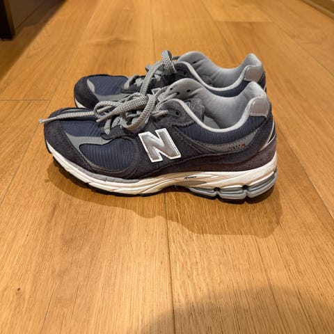 990 V2 fra New Balance, laget i USA. Farge «petrol», i skinn. Gode sko som er brukt, men masse bruk igjen. Liten skjønnhetsfeil på tupp på ene sko, se bilde. Selges derfor rimelig.