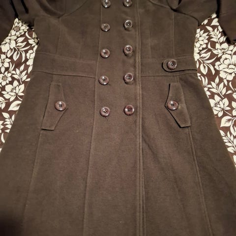 Selger en kåpe med knyting i livet i flott gråfarge og inner-fôr. Kåpen kan enten brukes åpen med kraftig kant rundt halsen eller lukkes fremme med knapp for kaldere dager. Selges som den er, ingen retur. Den sitter ikke som den pleier og ønsket, så selger videre og håper noen andre kan få glede av den! Pent brukt, men kanskje noe nuppete blitt, så pris deretter :) Sendes mot at kjøper betaler frakt, eller hentes etter avtale nær Frogner stadion busstopp på Majorstuen :)