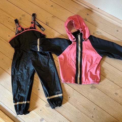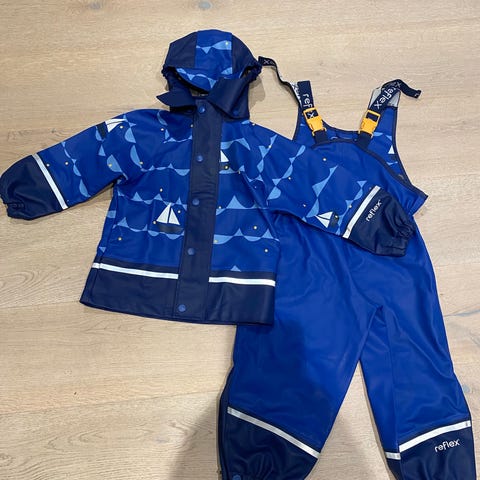 Pent brukt regntøy i to deler . Ingen riper/hull/flekker. Str. 98