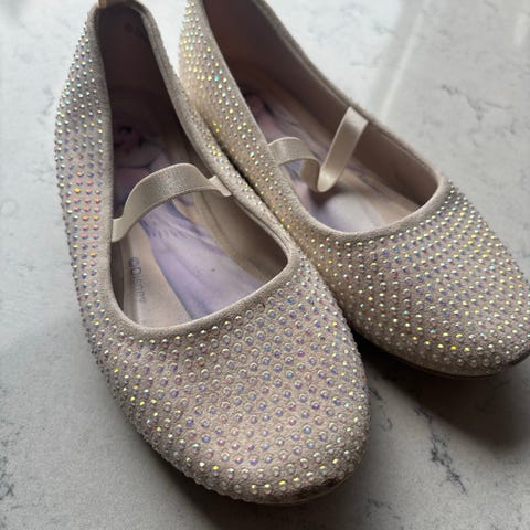 Nydelig ballerinasko- i gull/glitter. «Diamanter» på toppen.
