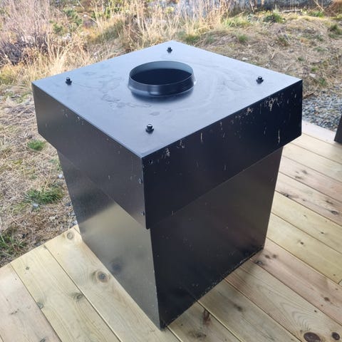 Pipehatt for 22 grader tak 50x50 cm og 80 til 90 cm høyde. 15x15 cm røykrørsåpning Ca 10 år gammel, men hel og fin.