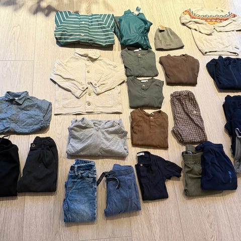 Foret bukse, tøffe skjorter m.m. Se bildetekst for merknader. Jevnt over lite brukt og i god stand. Røyk- og dyrefritt hjem.