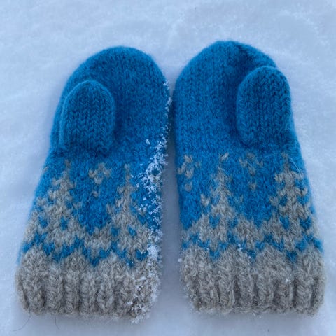 Gode og varme julevotter, strikket i 65% ull og 35% alpakka.