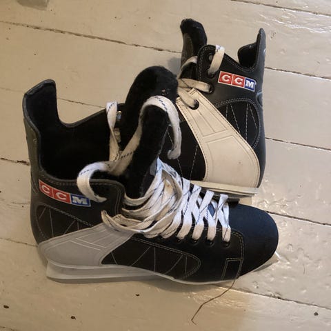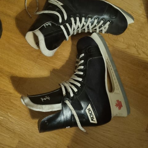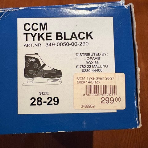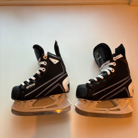 Head ishockeyskøyter for barn i størrelse 28. Skøytene har svart farge og er designet for ishockeybruk.