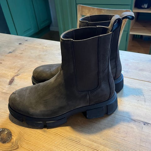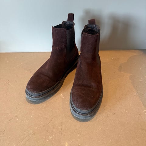 Pene kvalitetssko fra kultmerket Ferry. Laget i Italia, semsket skinn i pen blåfarge. Kan ligne på desert boots fra Drake’s, Astorflex, Loake 1880 og Polo Ralph Lauren / RRL. Ligger mellom 43/44 i str. Lite brukt og mye bruk igjen i disse.