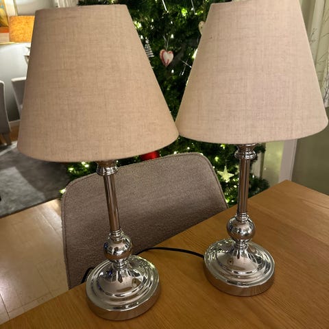 Nydelige bordlamper. Den ene mangler skjerm. Nypris pr stk var 1799 kr. Selges samlet.