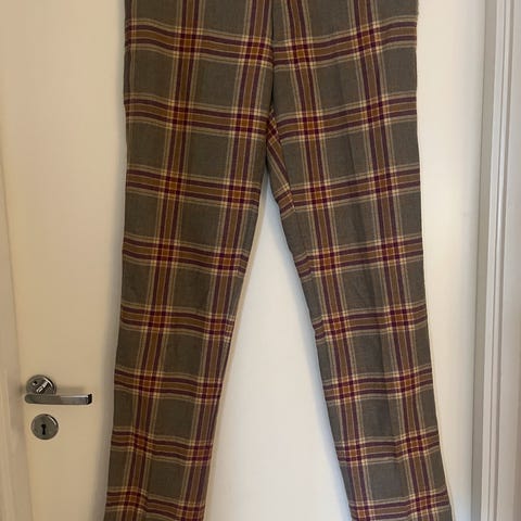 Laget av et mykt materiale med justerbare seler med mønster. Buksen har glidelås og knappelukking, samt praktiske lommer. Egnet til bruk i ulike sammenhenger der komfort og funksjonalitet er ønsket.