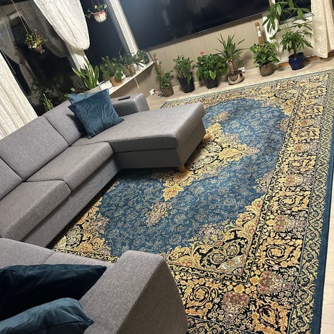 Selger et helt nytt persisk teppe, grunnet er at jeg har bestilt en til overs, og nå ser jeg at jeg ikke har plass til det. Teppet har veldig moderne, fine farger og mønster.