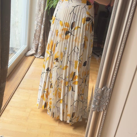 💛💚 Plisséskjørt i sennepsgul–grønn tone – flott fall