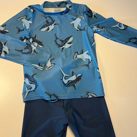 Veldig fint UV tøy til bading eller lek. Nykjøpt av oss i Tyskland og veldig lite brukt av et barn.Str. 5-6 år.