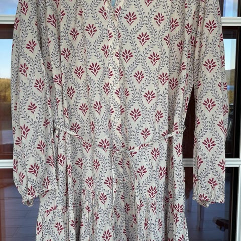 Størrelse TU (one size), men best for L. Avstand fra armhulen til armhulen: 50cm. Lengden (bak): 117cm.