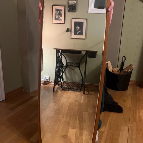 Retro teak speil i veldig god stand, ingen merker og nettopp oljet.
