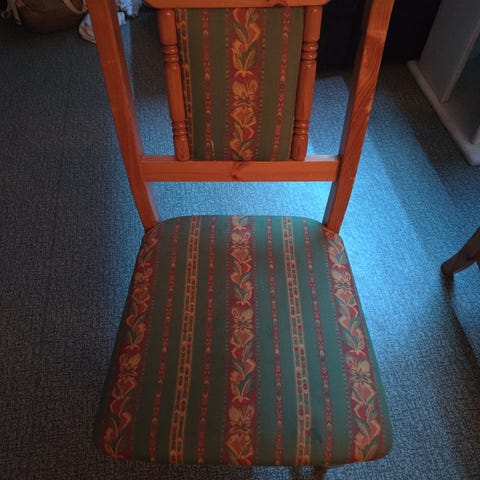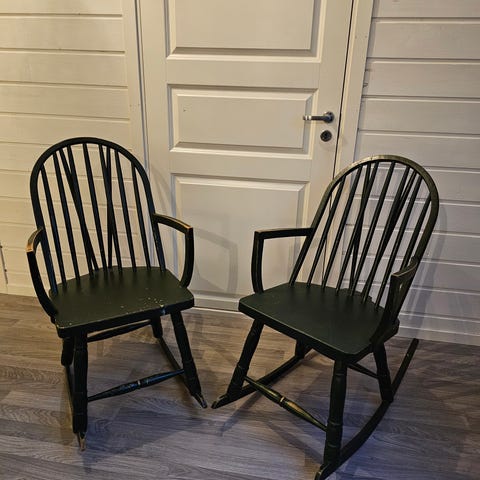 Snekret, heltre. Helt stødige og i god stand. Hvitmalt, maling har flasset av enkelte steder.