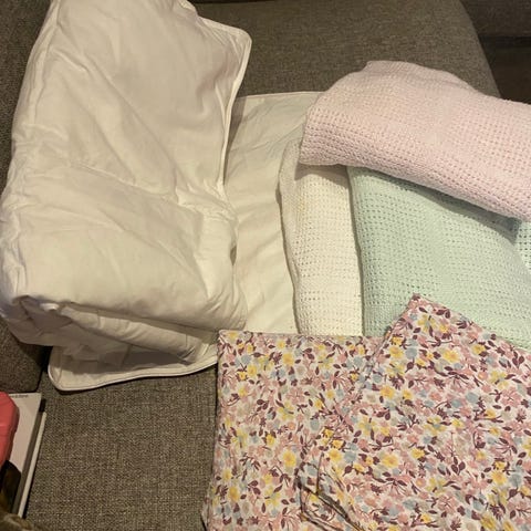 Dyne, pute og to sengetrekk (hvorav ett ikke er brukt) fra Ikea. To laken. Et nytt tisselaken (madrassbeskytter). Verdi over 1000,- pent brukt og noe nytt.