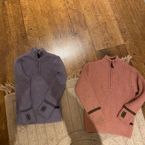 Jeg selger nesten ikke brukt sett fra Kattnakken – lue med knyting og matchende hals.