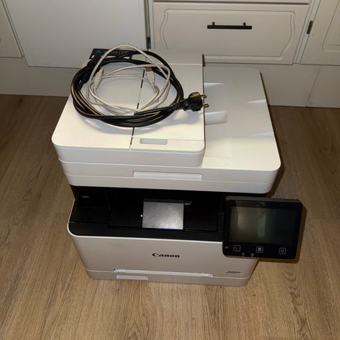 Canon i-SENSYS MF445dw multifunksjonsskriver med støtte for A4-papir, trådløs tilkobling og funksjoner for utskrift, skanning og kopiering. Enheten har et kompakt design og er egnet for kontorbruk. Kjøpt på slutten av pandemien, rett før det ble slutt på hjemmekontor. Ble lite brukt da, og blir ikke brukt nå. ..