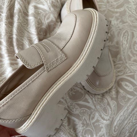Mango mokkasiner i hvit farge, laget av imitert skinn. Størrelse 40