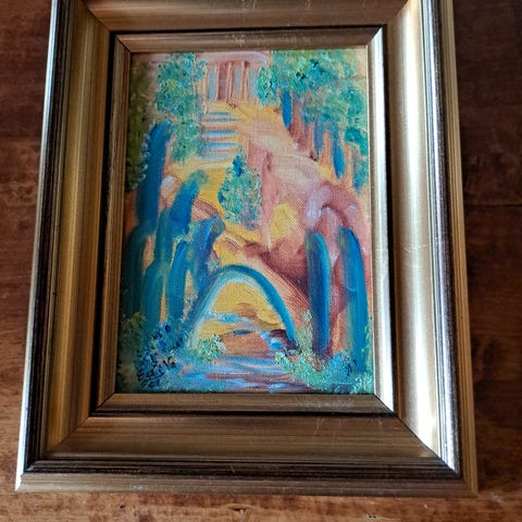 Innrammet, men glasset knust og fjernet.