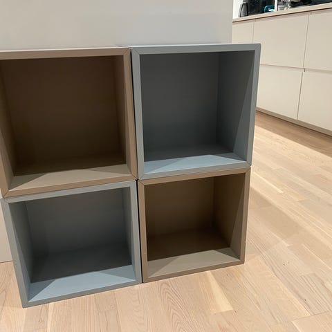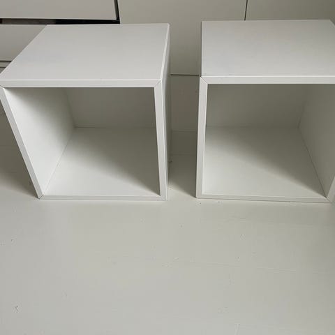 Selger 2x eket veggmontert skuffer. Noe skade på toppen, se bilde 800 for begge