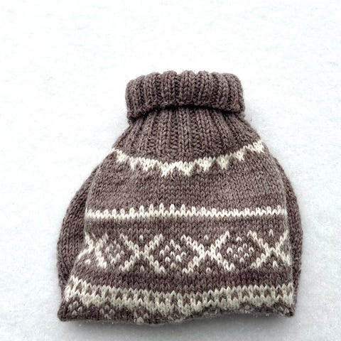 Håndstrikket Marius-genser til liten hund. Deilig, mykt ull. Lengde med halsen brettet: 41 cm, med halsen oppe: 48 cm. Bredde: 16 cm.