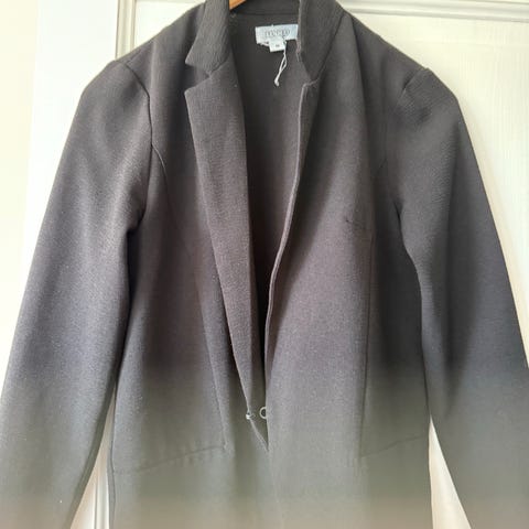 KAFFE Blazer i lilla farge, størrelse 42 for kvinner. Jakken har et enkelt knappelukking foran, to lommer, og klassisk krage. Fargen er dyp lilla/plomme, veldig fin 😊