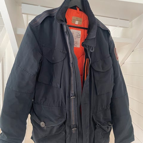 Parajumpers Masterpiece Series jakke i svart farge, størrelse S for herre. Jakken har flere lommer, knappelukking og glidelås, samt detaljer som emblem på ermet. Meget pent brukt.