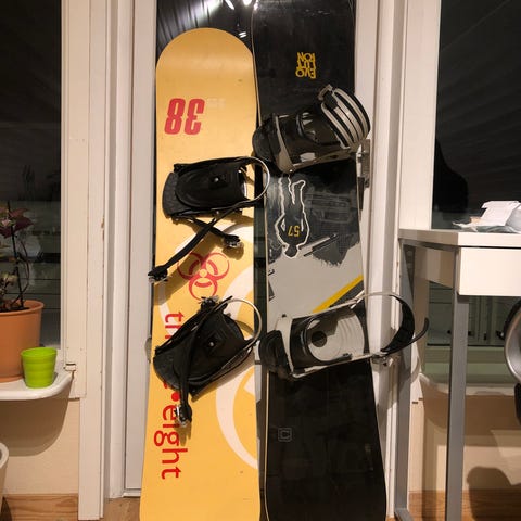 Mine to gutter kom ikke helt i gang med snowboard før de hadde vokst ut av disse. Kun brukt for å få balansen på brettet.
