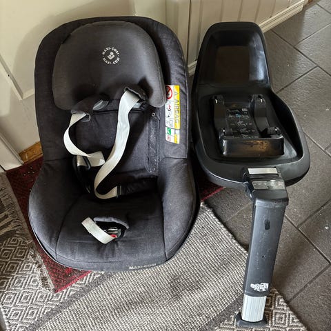 Maxi Cosi baby- og barnesete med tilhørende base selges.